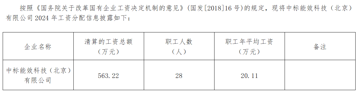 2024年中标能效科技(北京)有限公司工资分配信息披露