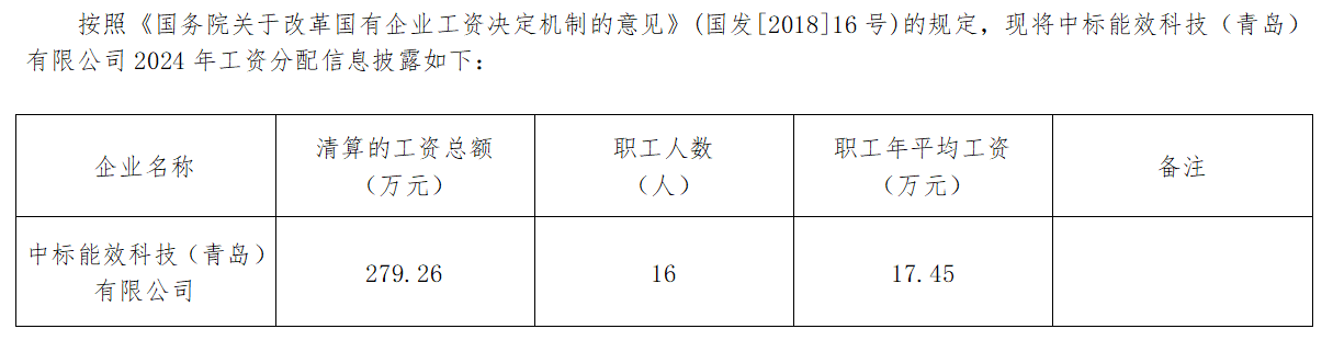 2024年中标能效科技(青岛)有限公司工资分配信息披露
