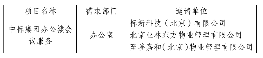 按照《中国标准科技集团有限公司采购工作管理办法(试行)》要求,现对中标集团办公楼会议服务项目竞争性谈判邀请单位公示。