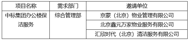 按照《中国标准科技集团有限公司采购工作管理办法(试行)》要求,现对中标集团办公楼保洁服务项目竞争性谈判邀请单位公示。